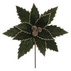 Flor Natalina Flor De Natal Veludo Verde Com Pinha...